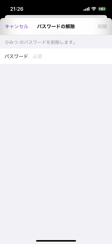 - ポップアップメニューより[パスワードの解除]をタップします。