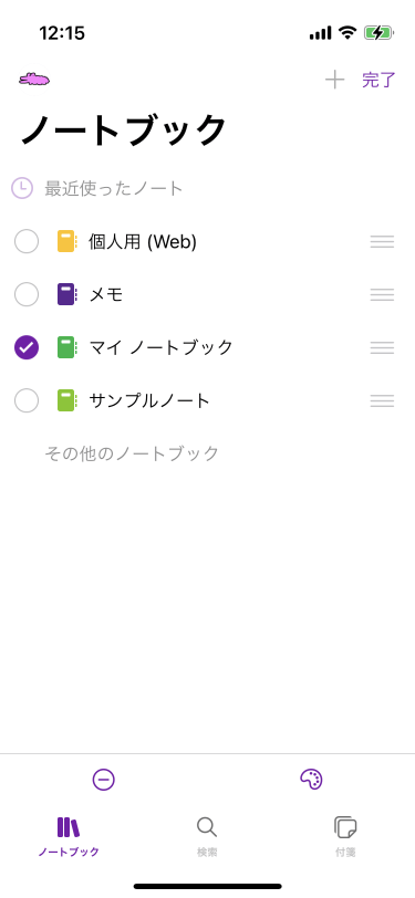 - ノートブック一覧画面に切り替えて、右上の[編集]をタップします。