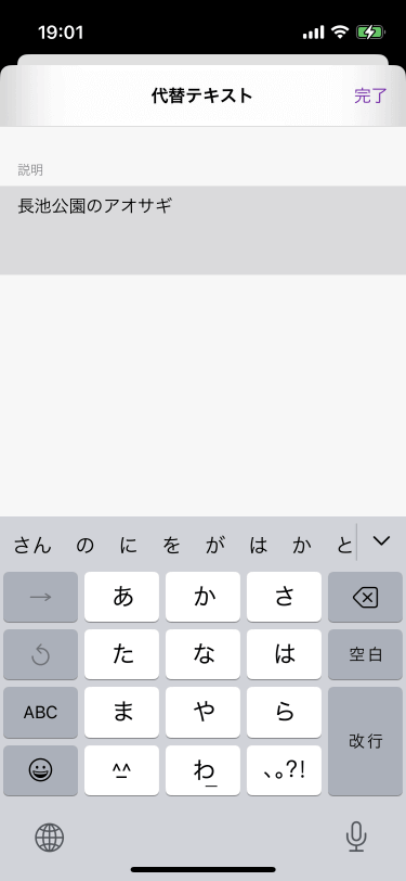 - [説明]に文字を入力して[完了]をタップします。