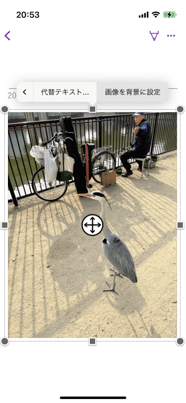 挿入された写真をページの背景にロックして、メモの画像に簡単に描画したり注釈を付けたりするには、設定したい画像を選択してポップアップメニューから[画像を背景に設定]を選択します。