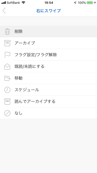 [右にスワイプ]を「削除」に割り当てる