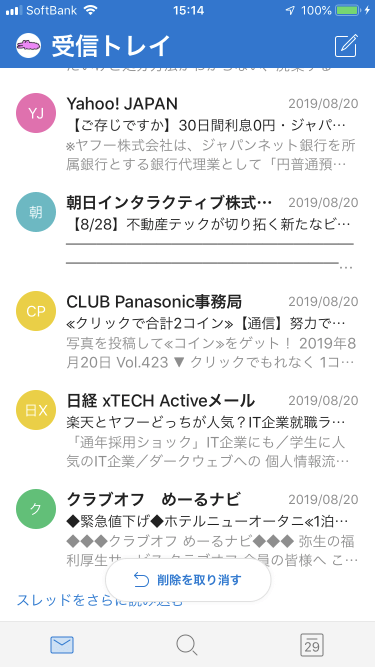 メッセージ一覧の削除したいメッセージを長押しして選択し、下のゴミ箱のアイコンをタップします。すでに開いているメッセージを削除するには、右上ゴミ箱のアイコンをタップします。
