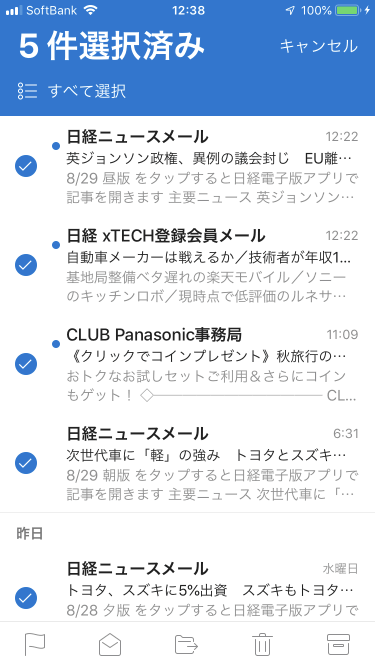 - メッセージ一覧の削除したいメッセージを長押しして選択します。複数ある場合は一つを長押しして選択状態にしてタップして選択していきます。