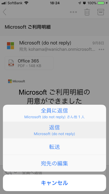 - [返信]を選択します。