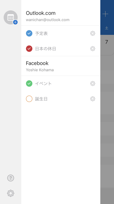 一部の予定表を非表示にするには、予定表画面左上のアカウントのアバター(ロゴ)をタップし、非表示にしたい予定表の色アイコンをタップします。チェックを外すことでその予定表が非表示になります。逆に表示するには、チェックを付ければOKです。