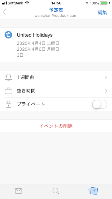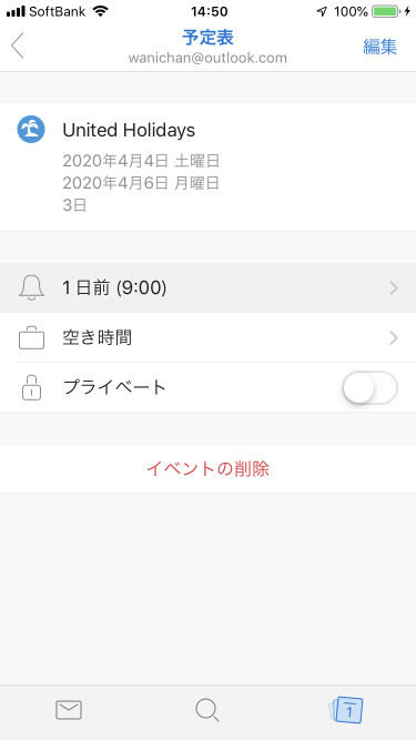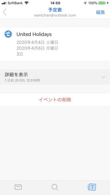 ※執筆環境:Outlook for iPhone バージョン 4.3.1