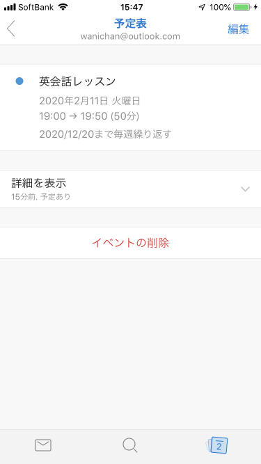 ※執筆環境:Outlook for iPhone バージョン 4.3.1