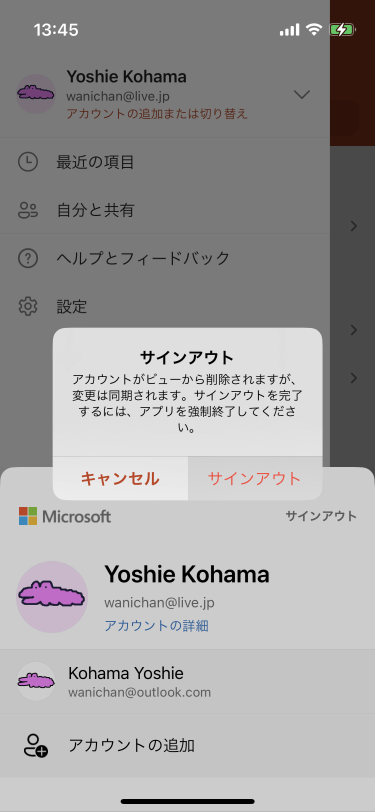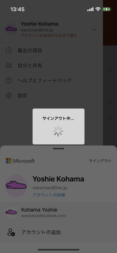 - サインアウトされ、もう一方のアカウントに切り替わりました。
