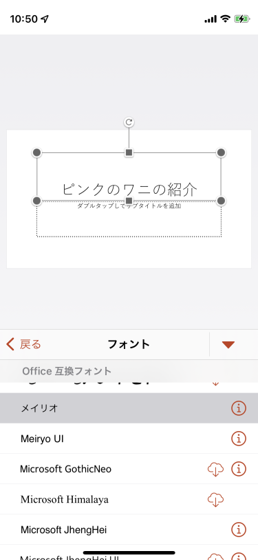 PowerPoint for iPhoneの既定のフォントは游ゴシック