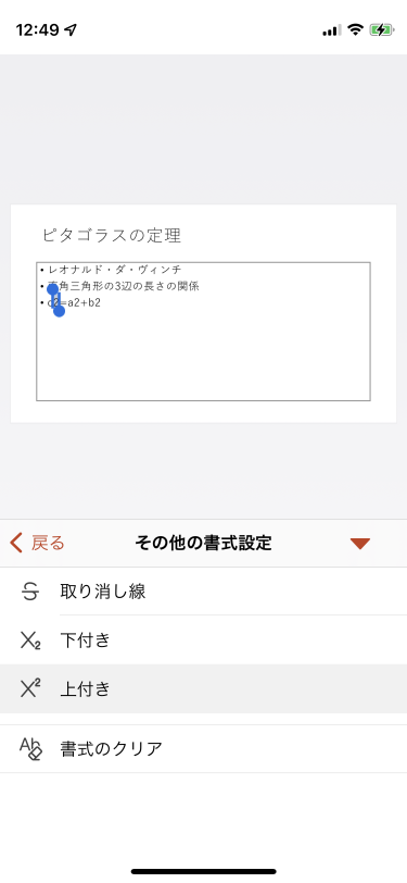 - ▼をタップすると、上付き文字になっていることを確認できます。