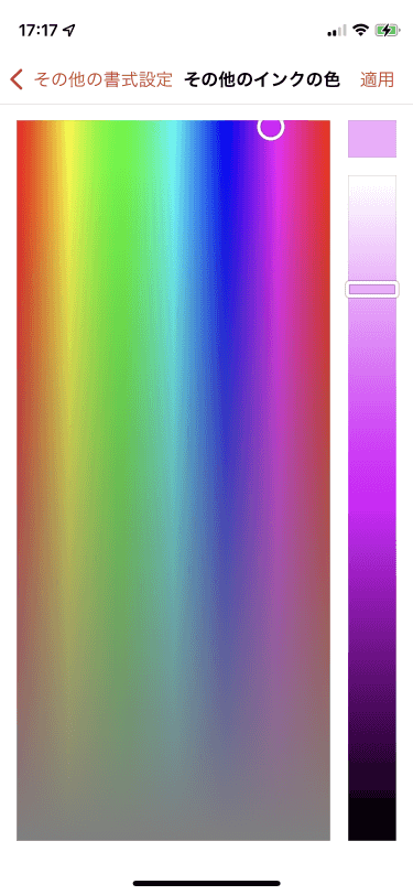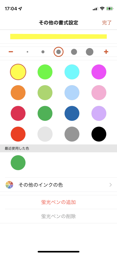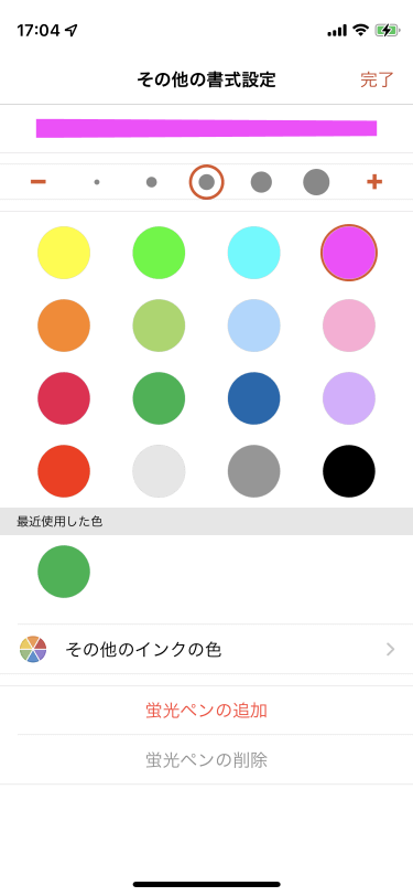 iPhoneではインクの色を自由に変更できます。画面右上の