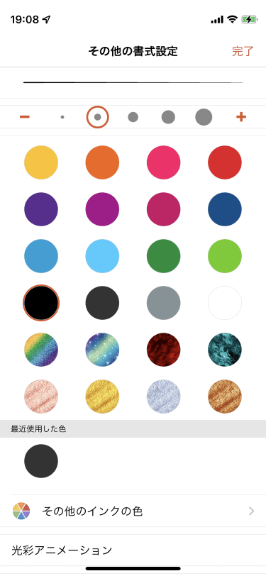 なお、ペンや鉛筆は0.25、0.5、1、2、3.5mm、蛍光ペンは2、4、6、8、10mmの5段階となります。
