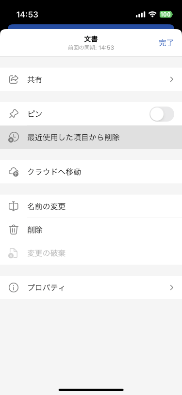 - 一覧から[最近使用した項目から削除]をタップします。