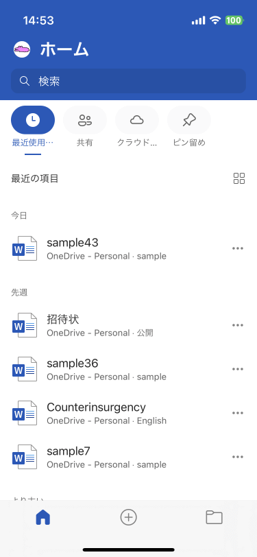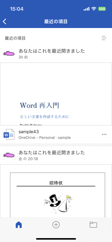- ホーム画面の[最近の項目]右端の