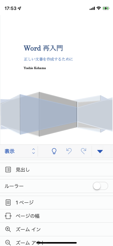 - [表示]タブに切り替えて[ページの幅]をタップします。