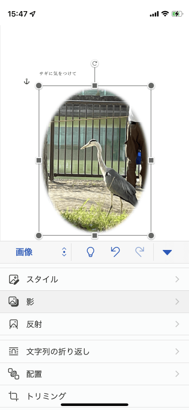 [リボンを開く]をタップし、[画像]タブの[影]コマンドから適用したいスタイルを選択します。