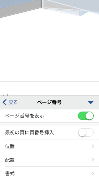 1ページ目にはページ番号を挿入せず、2ページ目からページ番号を挿入するには、iPhoneやiPod touch画面右上の
