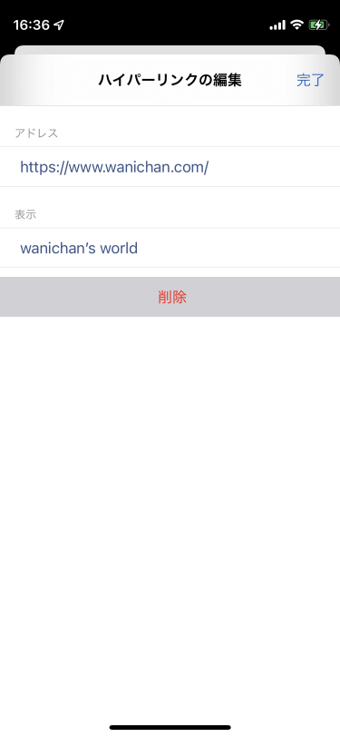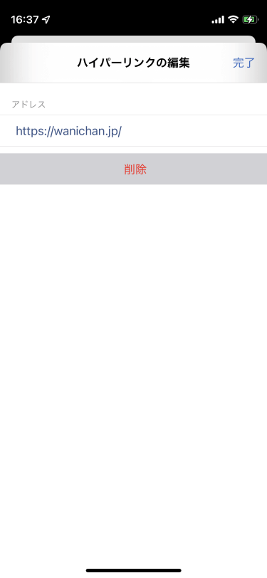 - [ハイパーリンクの編集]画面の[削除]をタップします。