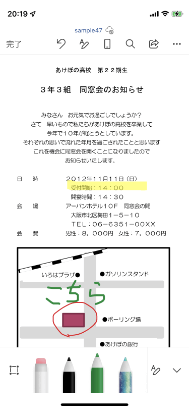 - ペンの色が変わりました。
