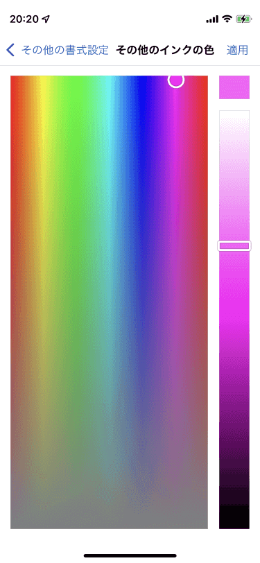 - 変更したい色を作成し、[適用]をタップします。