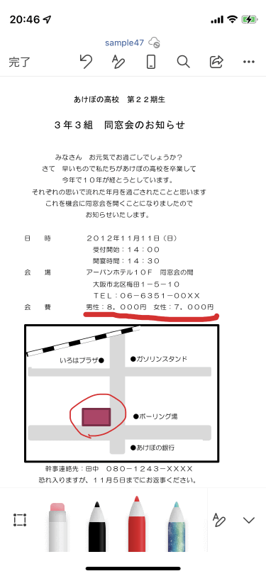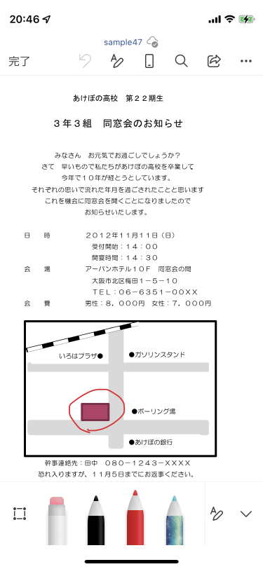 - 描画ツールから太さを変更したいペンを2回選択します。