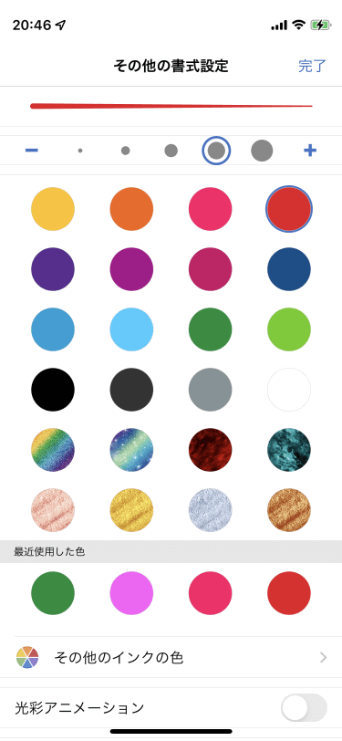 - [その他の書式設定]一覧から選択し、[完了]をタップします。