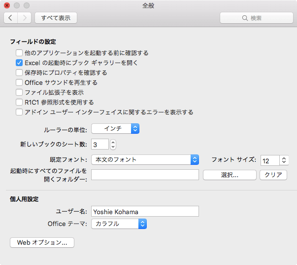 - Excelの環境設定の[全般]を選択します。