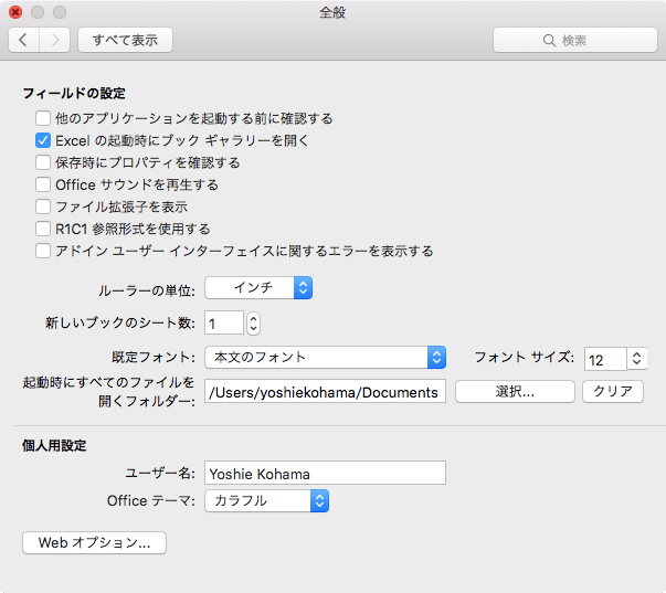 - Excelの環境設定の[全般]を選択します。