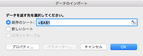 - 取り込み先のセルを選択して[OK]ボタンをクリックします。