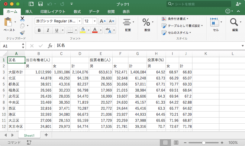※平成27年5月17日に大阪市で行われた住民投票の結果データをテキストファイルにしました。