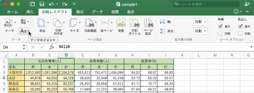 ワークシートやブックの書式設定