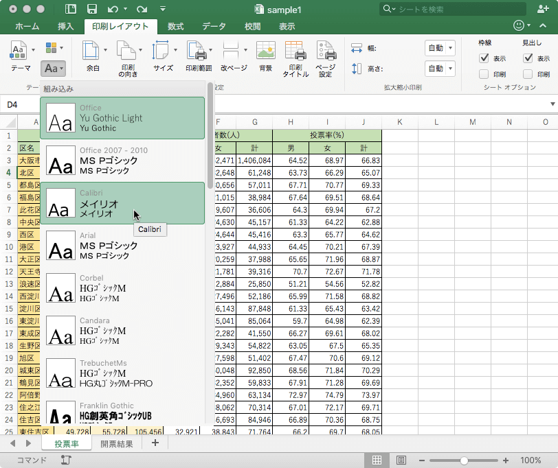 - 一覧から異なるテーマのフォントを選択します。