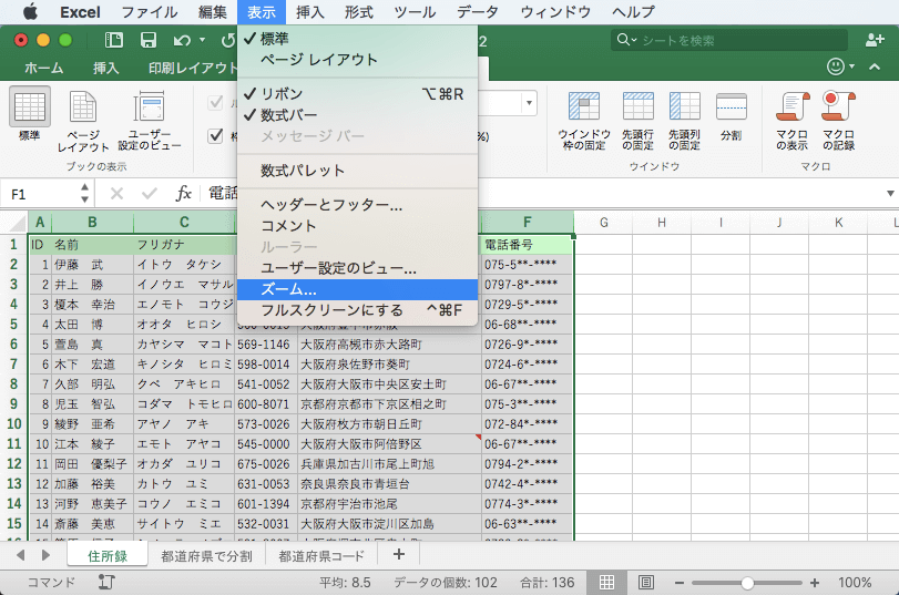 - [表示]メニューの[ズーム]をクリックします。