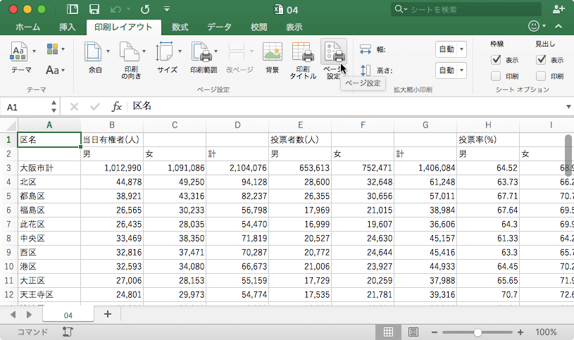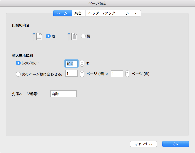 [ページ設定]ダイアログボックスの[ページ]タブでも印刷の向きを変更することが可能です。[ページ設定]をクリックすると、[ページ設定]ダイアログボックスが表示され、[ページ]タブで印刷の向きを変更できます。