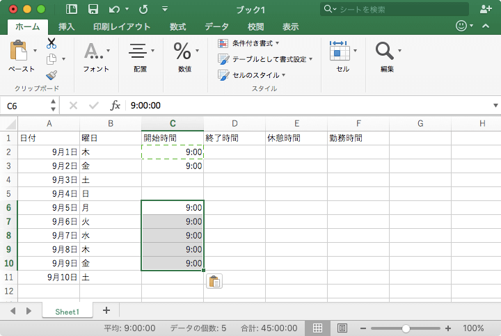 複数のセルにまとめて貼り付ける