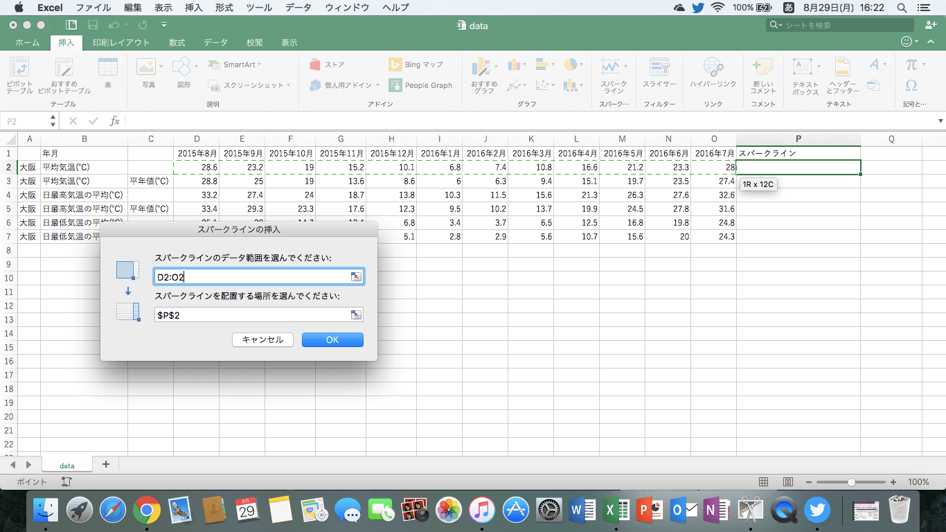 スパークラインを挿入するには