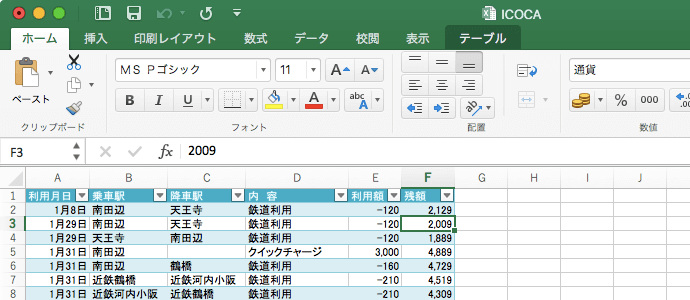 - 先頭行のセルに移動するには、commandキーを押しながら↑キーを押します。