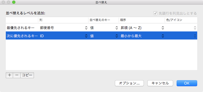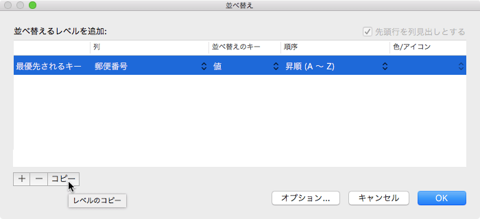 テーブルの並べ替えのレベルをコピーするには