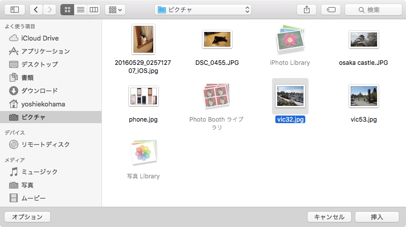 - ファイルを選択して[挿入]ボタンをクリックします。