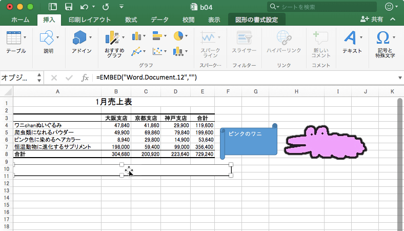 Word 文書オブジェクトの挿入