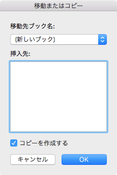 [移動またはコピー]の[移動先ブック名]一覧から[(新しいブック)]を選択し、[コピーを作成する]にチェックを入れて[OK]ボタンをクリックします。