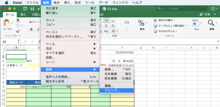 - [編集]メニューの[検索]をポイントして[ジャンプ]を選択します。