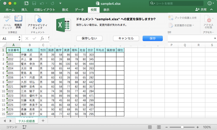 - ブックを閉じるときに以下のメッセージが表示されるので保存します。