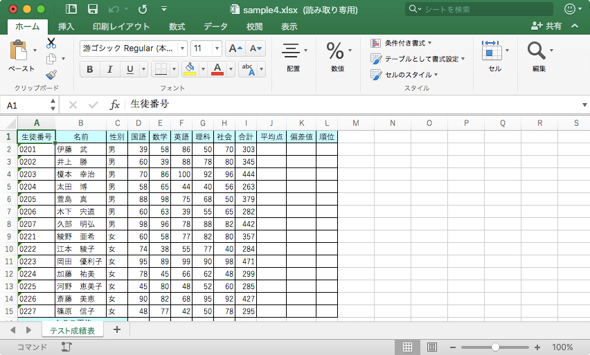 - 読み取り専用でブックが開きました。