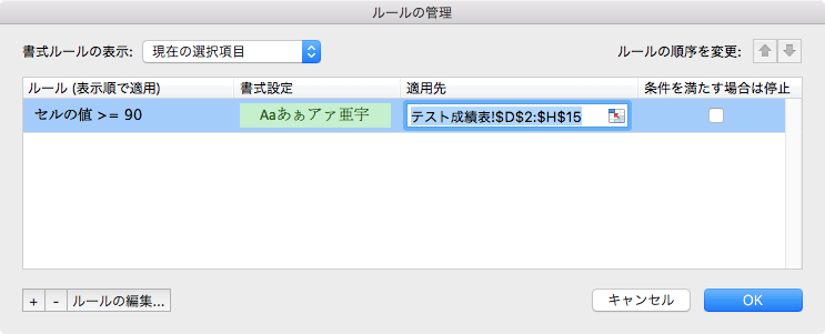 詳細な条件付き書式の適用