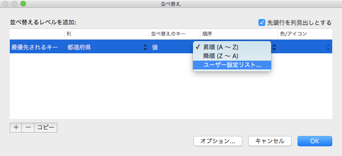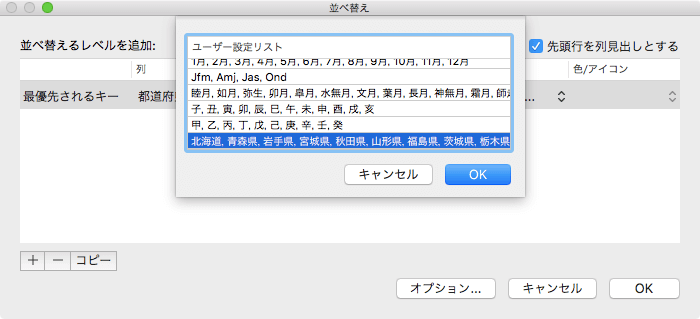- [順序]の一覧から[ユーザー設定リスト]を選択します。