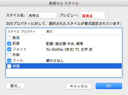 - 新しいセルのスタイルが作成されました。