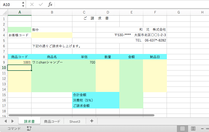 あらかじめ、商品名や単価にVLOOKUP関数を使って数式を入れておくと、入っていない場合にエラー値が返されます。