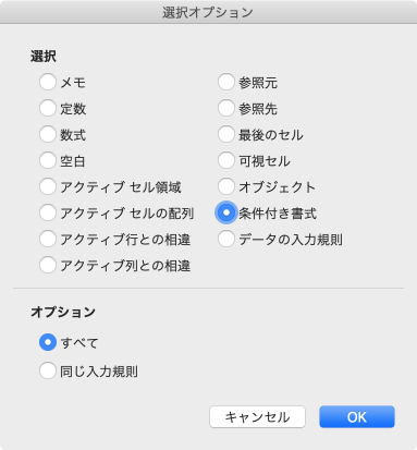 - 条件付き書式が適用されているセルのみ。[データの入力規則] で、次のいずれかの操作を行います。
