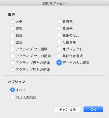 現在選択されているセルと同じデータの入力規則が適用されているセルを検索するには、[同じ入力規則] をクリックします。